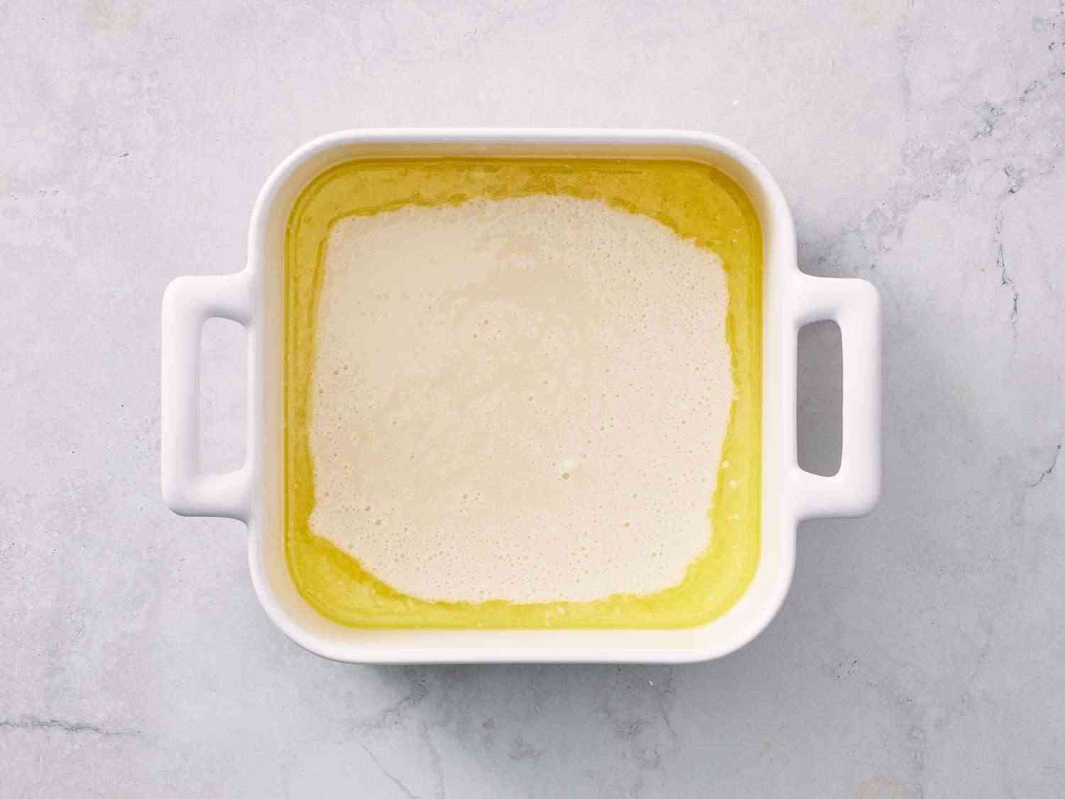- Step 2:Put butter in an 8-inch square or 9-inch round pan; place in the oven until butter is melted. Remove the pan from the oven and set aside. Dotdash Meredith Food Studios